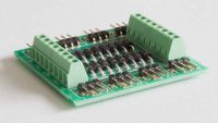 Degenen die toch een meer gestructureerde oplossing zoeken kunnen gebruik maken van de MDdec. Dit is een printje waarop de diodes voor 8 dubbelspoelaandrijvingen zijn ondergebracht. Bijkomend voordeel is dat er op dit printje ontkoppelcondensatoren zitten om de spanningspieken af te vangen die kunnen ontstaan bij aandrijvingen met eindafschakeling. Het MDdec printje is zo gemaakt dat je zowel schroefconnectoren als printstekkertjes kunt gebruiken voor de aansluiting van je spoelen en de bedrading naar de PM32.